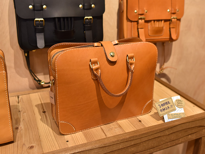 「近藤さんはどちらかというと豪快な鞄を作ることが多かったけど、俺はこういうビジネスバッグとかカッチリした鞄が多いかもしれない。ビジネスバッグだとどうしても革をたっぷり使うから少し重いんだけど、小ぶりの物だと『ヘルツのラティーゴ』っていう革の持ち味が良くわかると思うし、革好きな方は楽しめるんじゃないかと思います。」