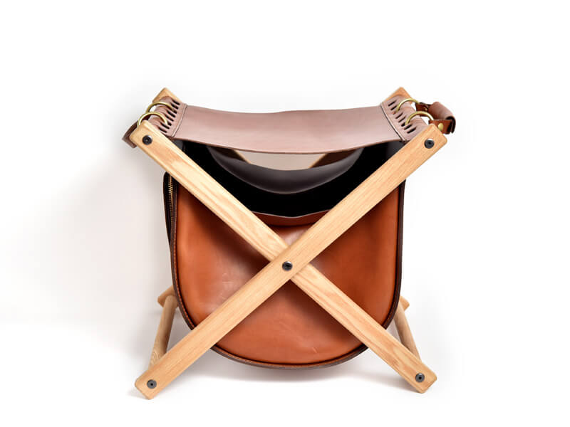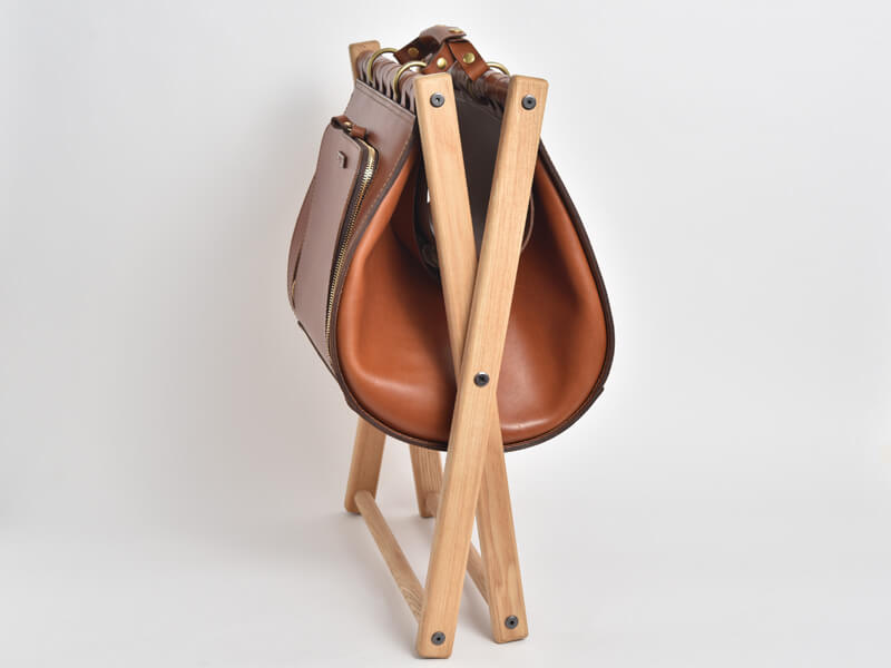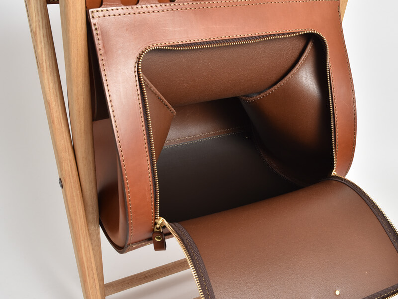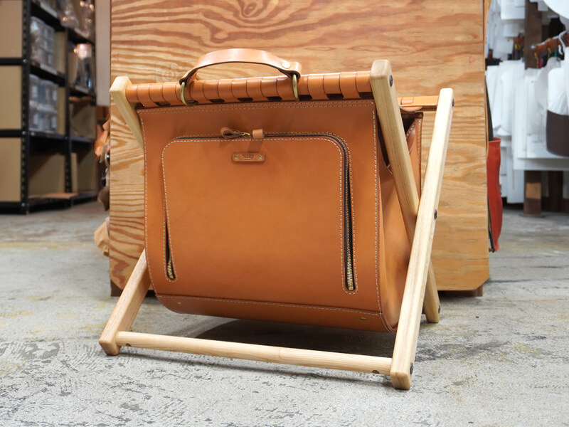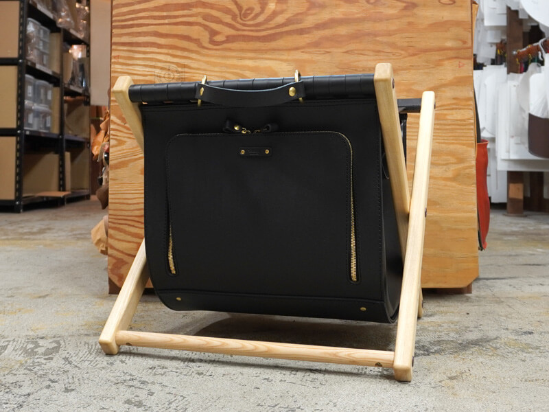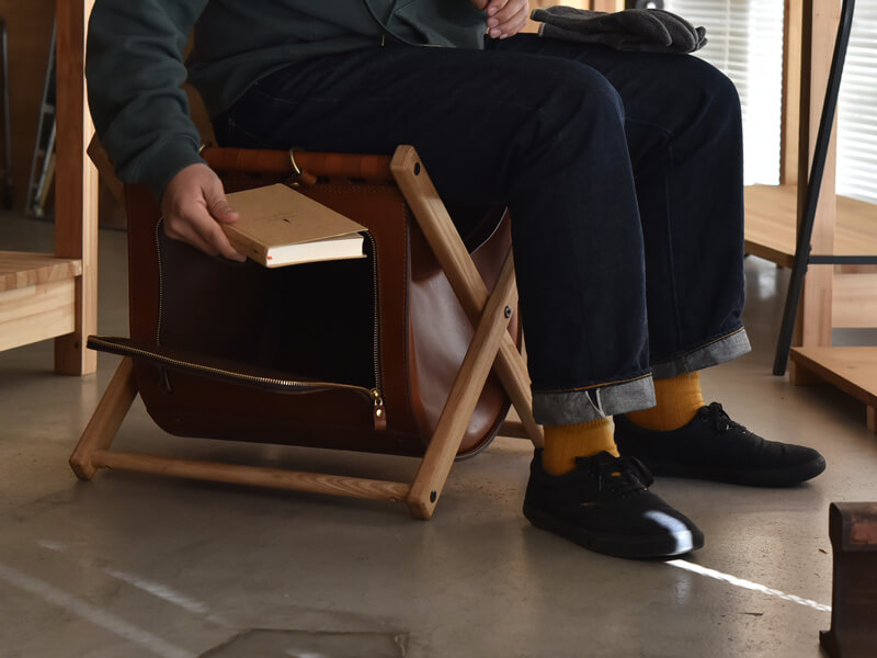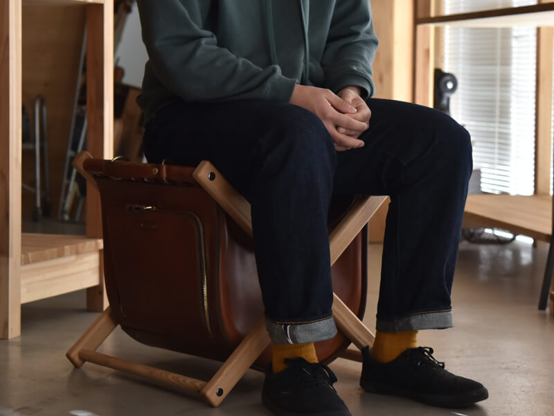 高見創作室さんは、特注家具などの設計、デザイン、施工までを一貫して行うヘルツとは異業種の職人です。今回、ヘルツの作り手と縁あって、椅子と鞄の機能を備えた特別な鞄を作りました。