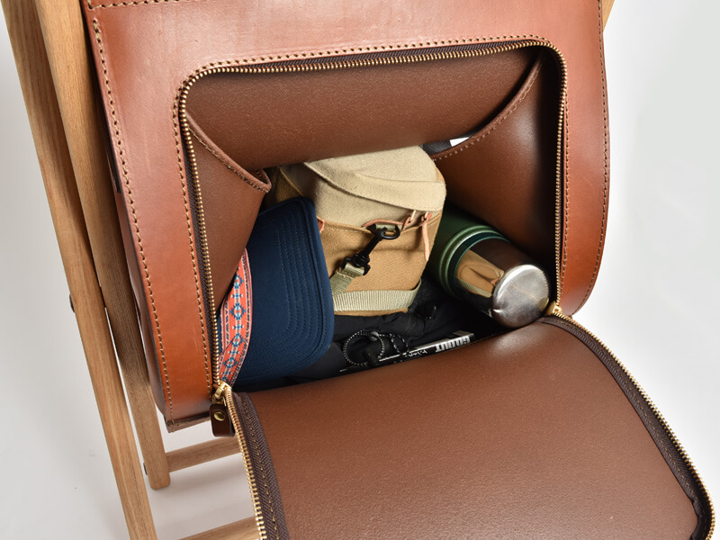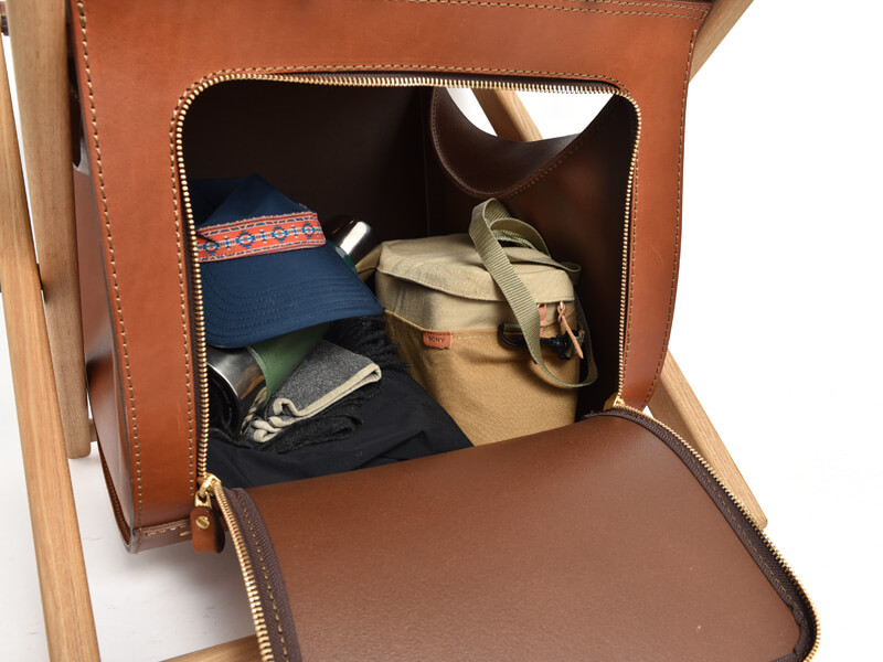 こちらはリュックよりもさらに大きな椅子となっており、ゆったりと座ることができます。大きくなったので収納部も大容量です。