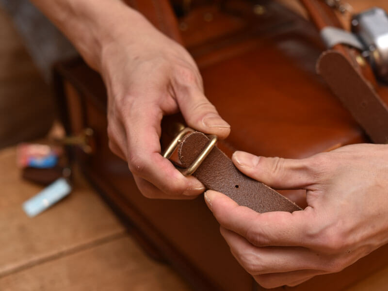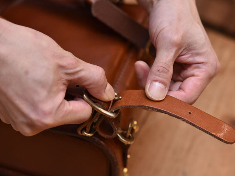 一回通したストラップを折り返してまた通すという方法。ちょっとまだ分かりづらいですよね。もう少し詳しくやり方を載せます。