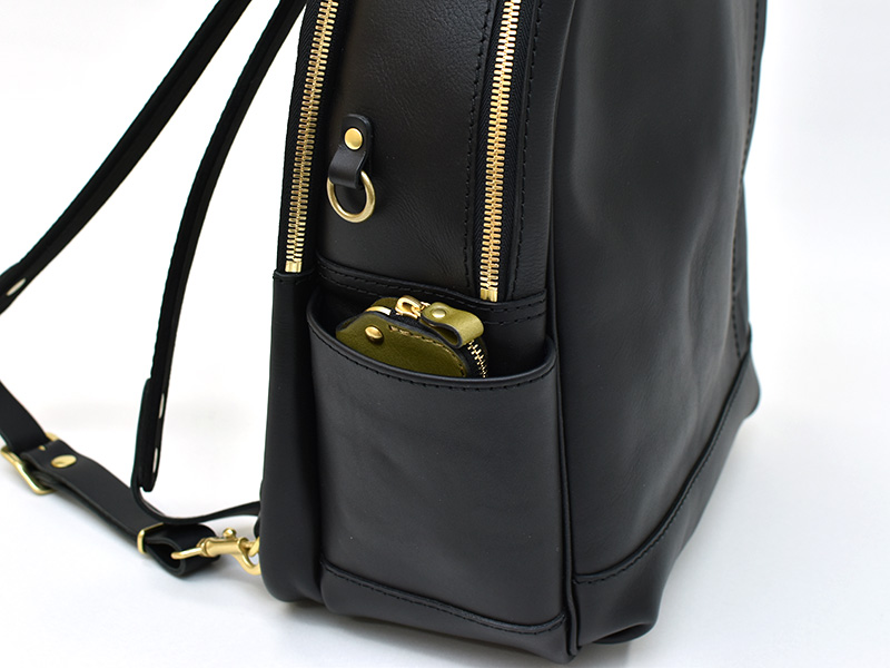 「あと特筆すべきは、ポケットの豊富さですね。全部合わせると6部屋になりますが、それぞれ全部すごく使いやすいのが素晴らしいと思います。マチには便利な丸カンも付属していますね。」