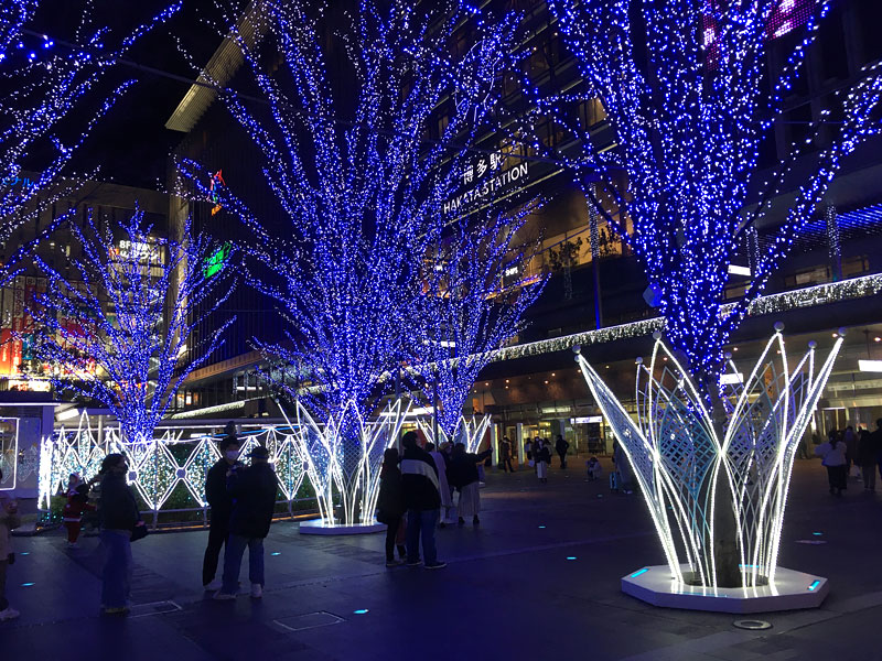 博多では今年も素敵にライトアップされ、賑わっています。