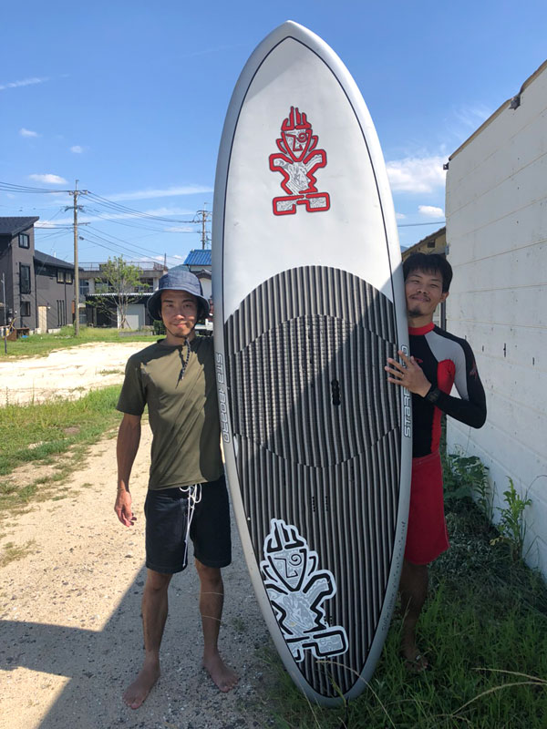 趣味は外仕事をしていた事もあり、アウトドアな遊びが大好きです。最近1番、ハマっている遊びが、SUP(スタンドアップパドル)です。SUPとは、サーフィンのロングボードをちょっと大きくした板の上に立って、パドルというオールの様な物で漕いで遊ぶマリンスポーツです。そのSUPでサーフィンをしたり、無人島まで漕いで遊んでいます!