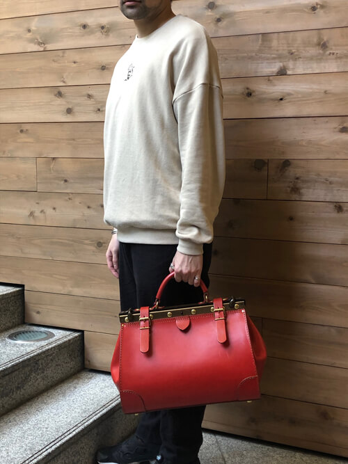 この鞄の中には一体何が入っているんだろう・・・と周りの目をひくデザインです。
