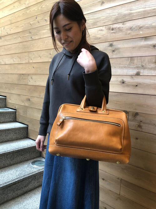 先日、街へ買い物に出たらヘルツの鞄を持っている方を複数見かけました。凄くきれいに経年変化している鞄、仕事の道具でいっぱいの鞄。近くで見たい気持ちを抑え、心を弾ませながら帰路につきました。お客様が大切に鞄を使っていらっしゃるのを見ると、本当に嬉しくなりますね!