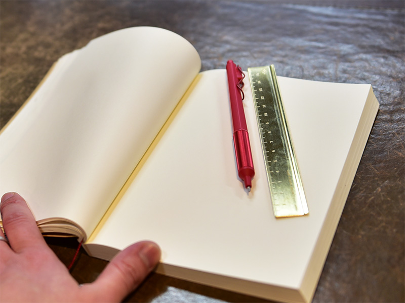 中身は罫線等無い無地タイプ。本当に何も気にせずどんどん書き込んだり、切ったり折ったり自由に使っています。