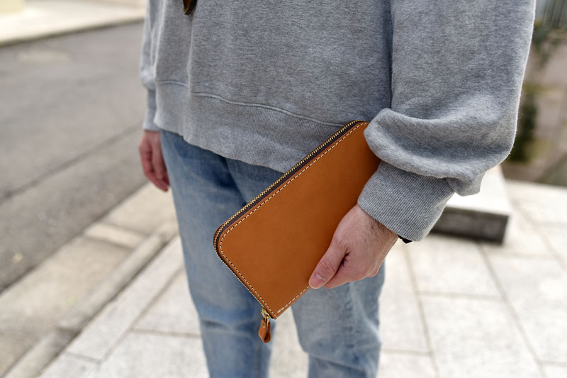 大きくてシンプルな見た目の長財布。ロングセラーのファスナー長財布(WL-58)をベースに、サイズに余裕をもたせて作った大容量の長財布です。