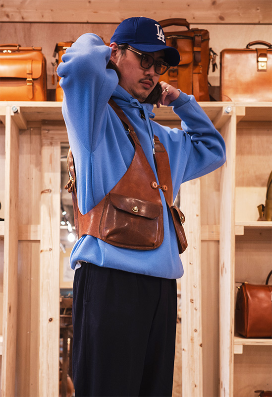さて今回は、名古屋店10周年記念に創業者の近藤が作った「着る鞄・トラーゲン」を名古屋店以外のスタッフにも着こなしてもらいました!