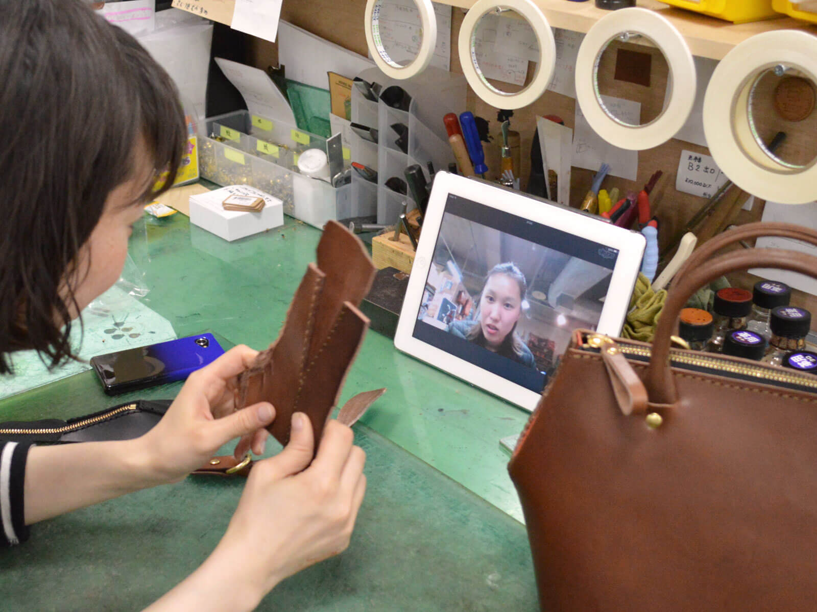 本店の店頭に並んでいる楠のポーチを見て衝撃を!