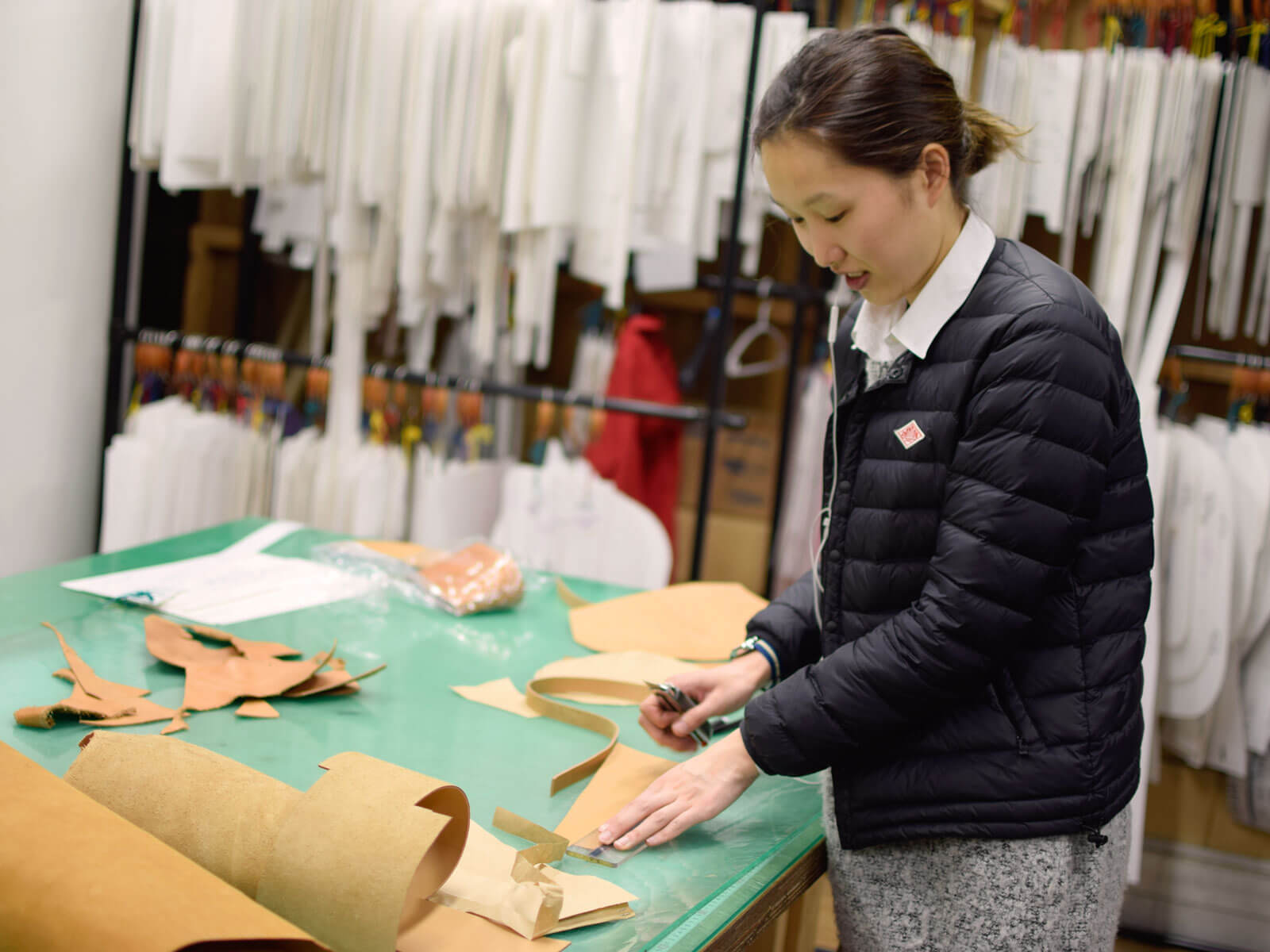 両サイドの縫い方取っ手のつけ方・仕様、ファスナー周りのおさまり方の案をもらい、すぐに型紙の変更を始めました!