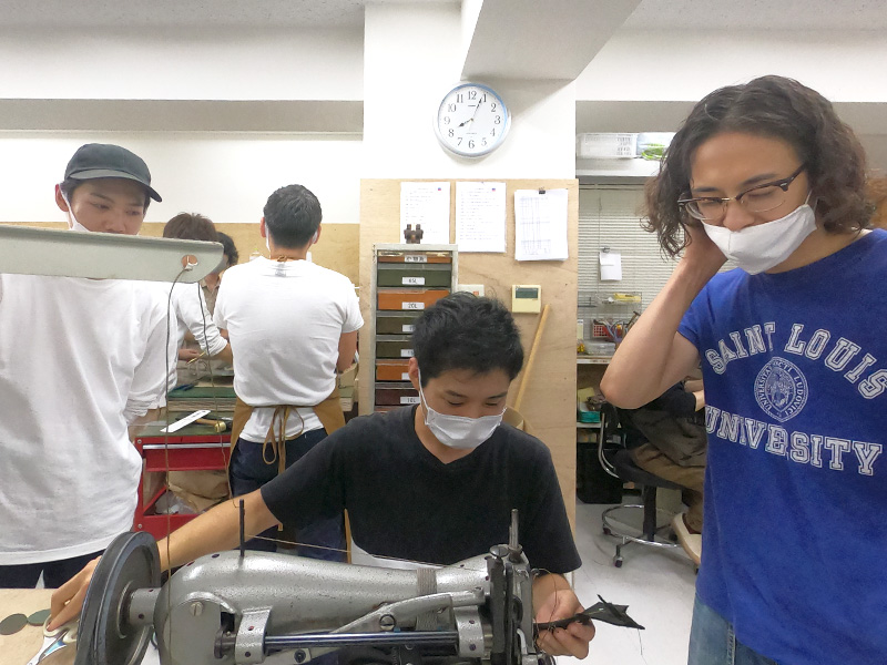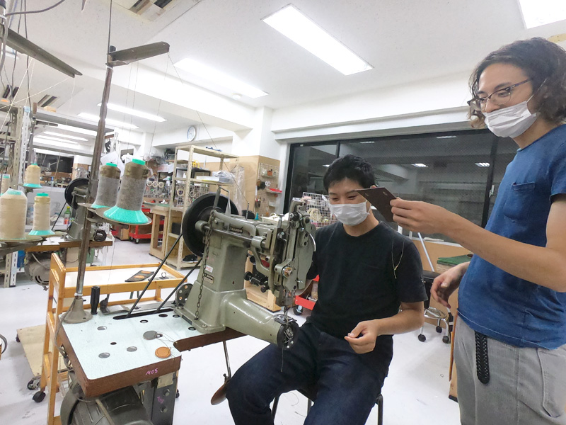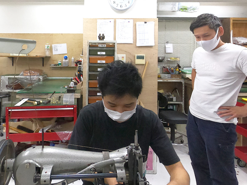 この時縫っていたのは、鞄の顔ともいえるHERZロゴの楕円パーツ。