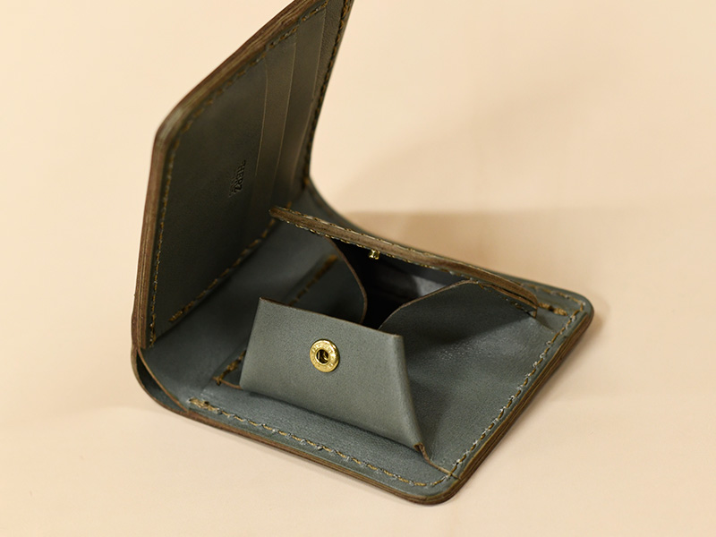外側は一枚の革なので革の表情もお楽しみいただけます。内部は小銭入れ側と、フタ側にもカードを入れるスペースが設けられているので収納力もあります!柔らかい革で作られているので小銭入れも大きく開いてくれます。