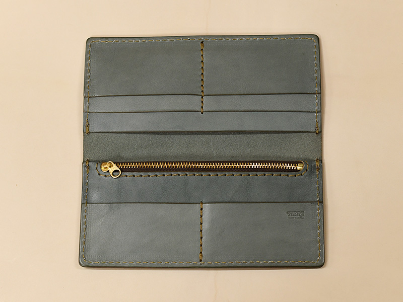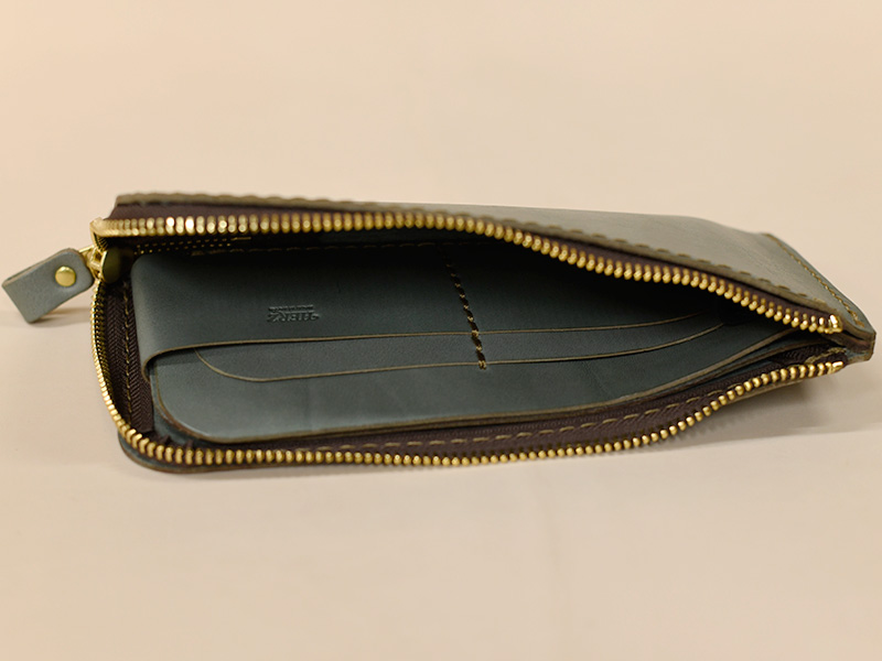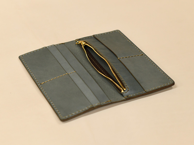 張りのあるラティーゴを使った長財布になります。アイビーグレイの革色でスムースな表情を楽しめる長財布はこちら!