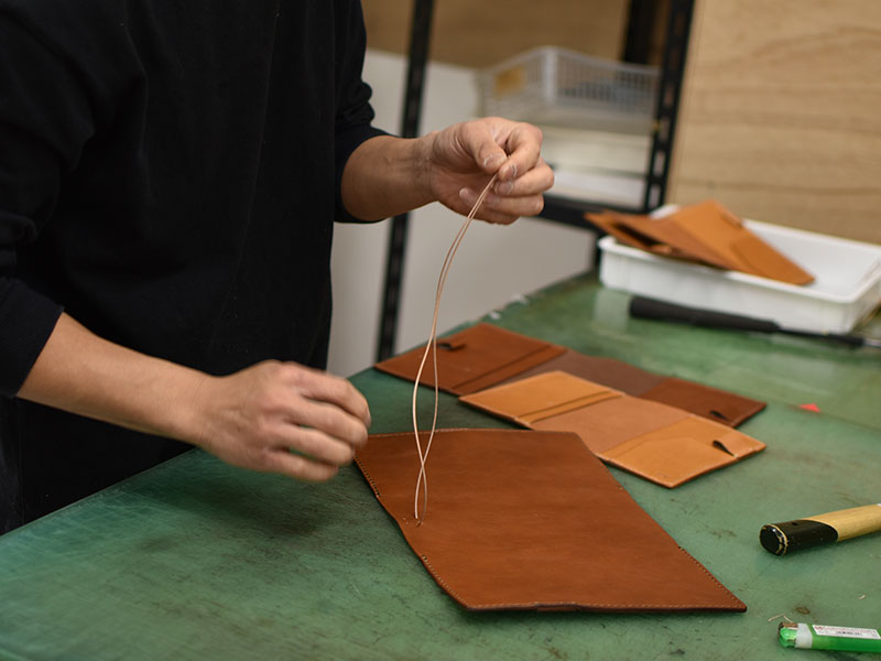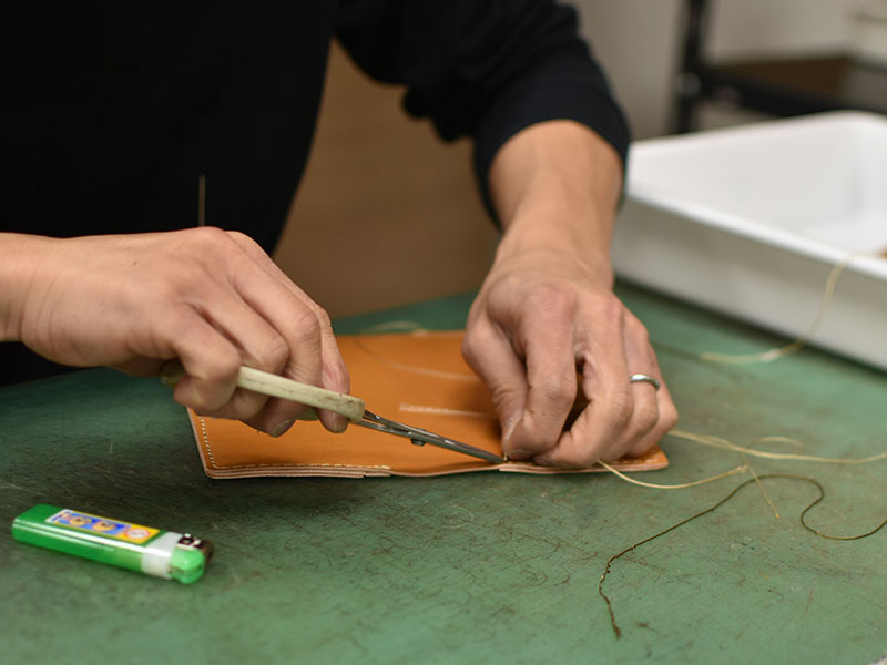 縫い付けが終われば、糸処理です。ほつれてこないよう丁寧に。