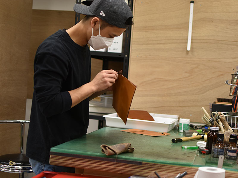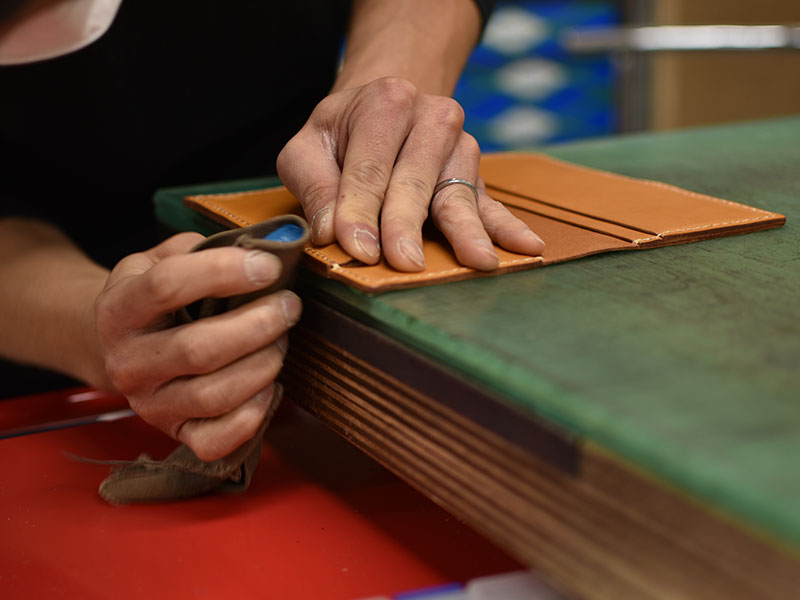 コバを磨いている所。グッと商品の印象が変わります。