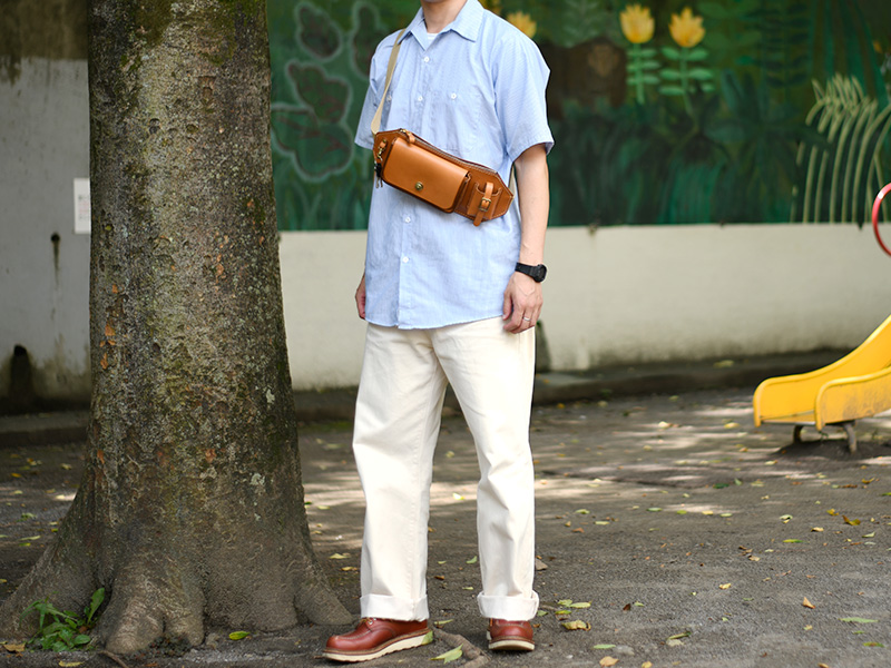 ウエストバッグなイメージより、少しストラップを長めに調節して、ヒップバッグのような使い方も有りです!