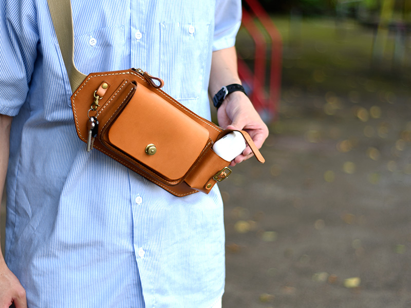 本体はマチが無い構造なので、収納力は高くは無いですがその分コンパクトに使っていただけます。