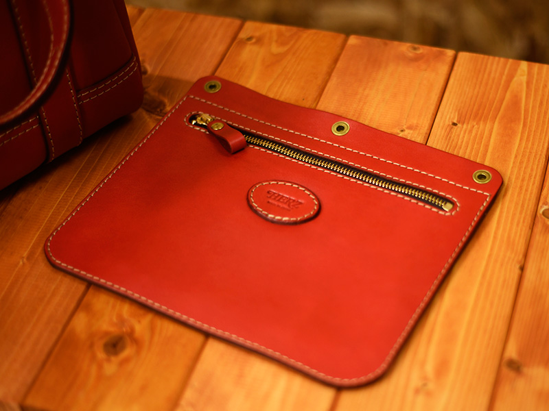 1点目:通常このアイテムは革色レッドの場合、茶糸での製作のところ、「白糸」へ変更して作ってもらいました。