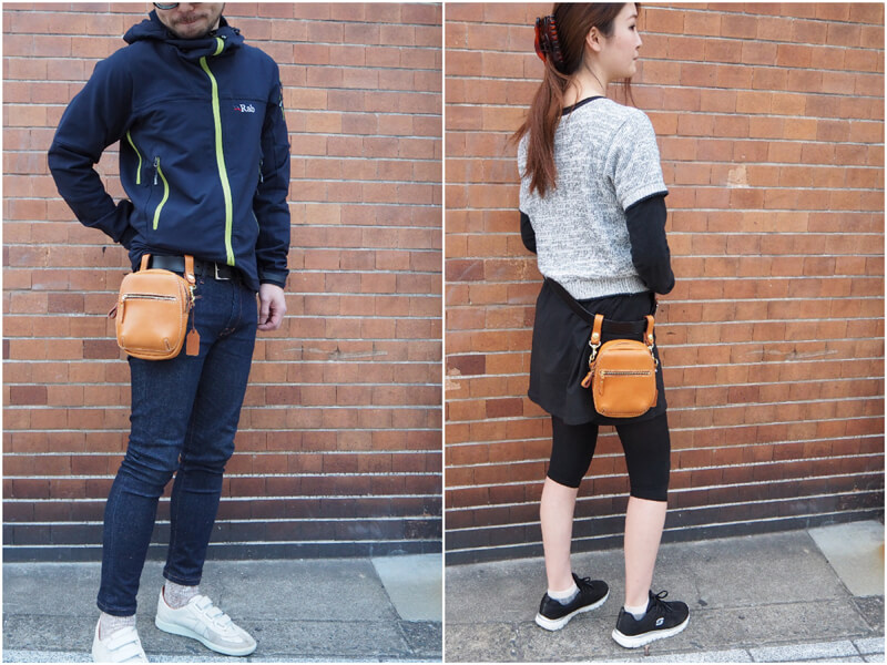 女性にはなかなかハードルの高いベルトポーチですが、タッチフットバッグの可愛いフォルムならベルトポーチでもチャレンジできると思います。