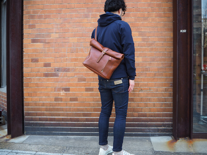 B5サイズのメッセンジャーバッグ。ヘルツでは珍しいロールトップになっています。
