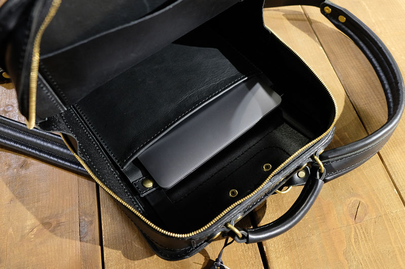 こちらの仕切りを活用する事で鞄の中でノートパソコンが移動してしまうのを押さえ付けることができます。