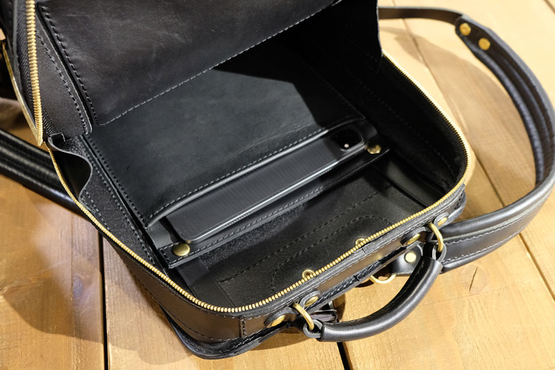 本体収納部分には小物類が入る浅めのポケットと一番のポイント!