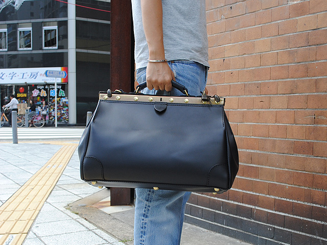 歴史ある旅館や街並みに似合う口枠タイプのノスタルジックなボストンバッグ。