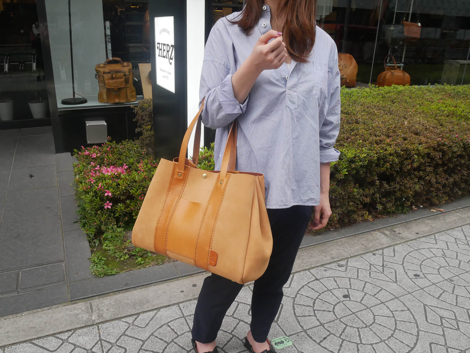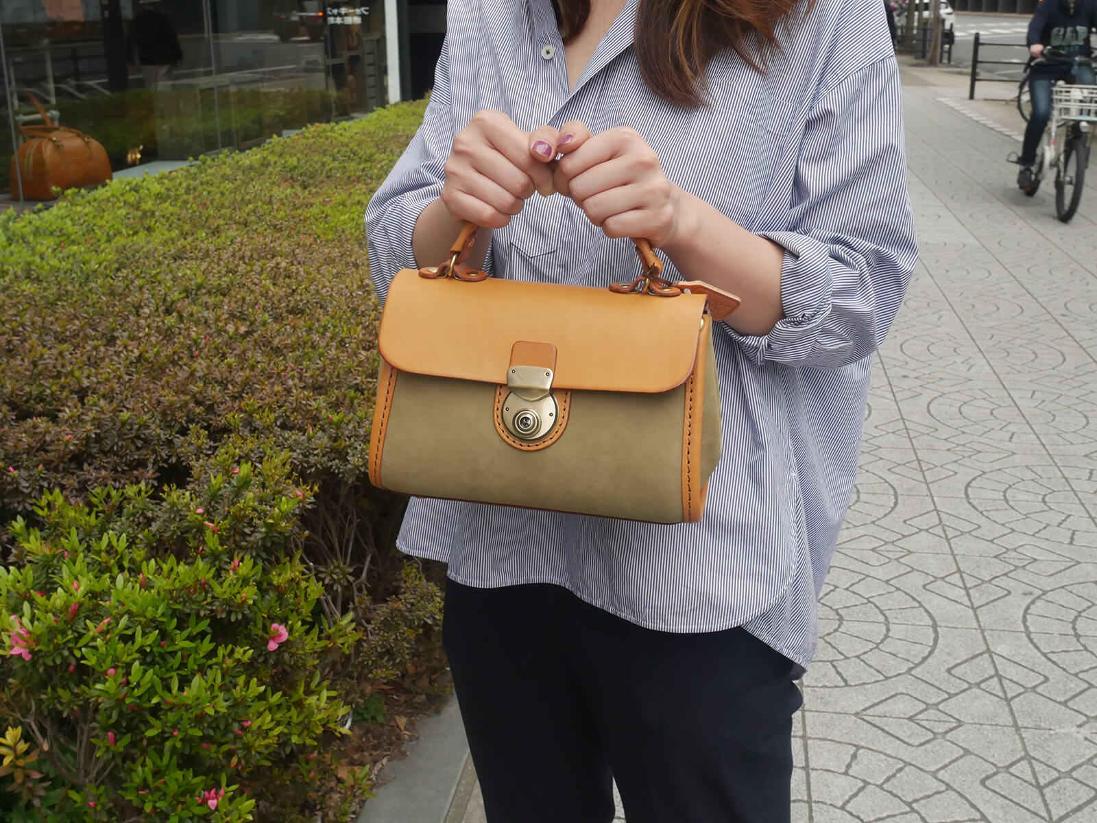 CA×CA、RD×CA。持ち手の長いHタイプ。前面にポケットをお付けいたしました。