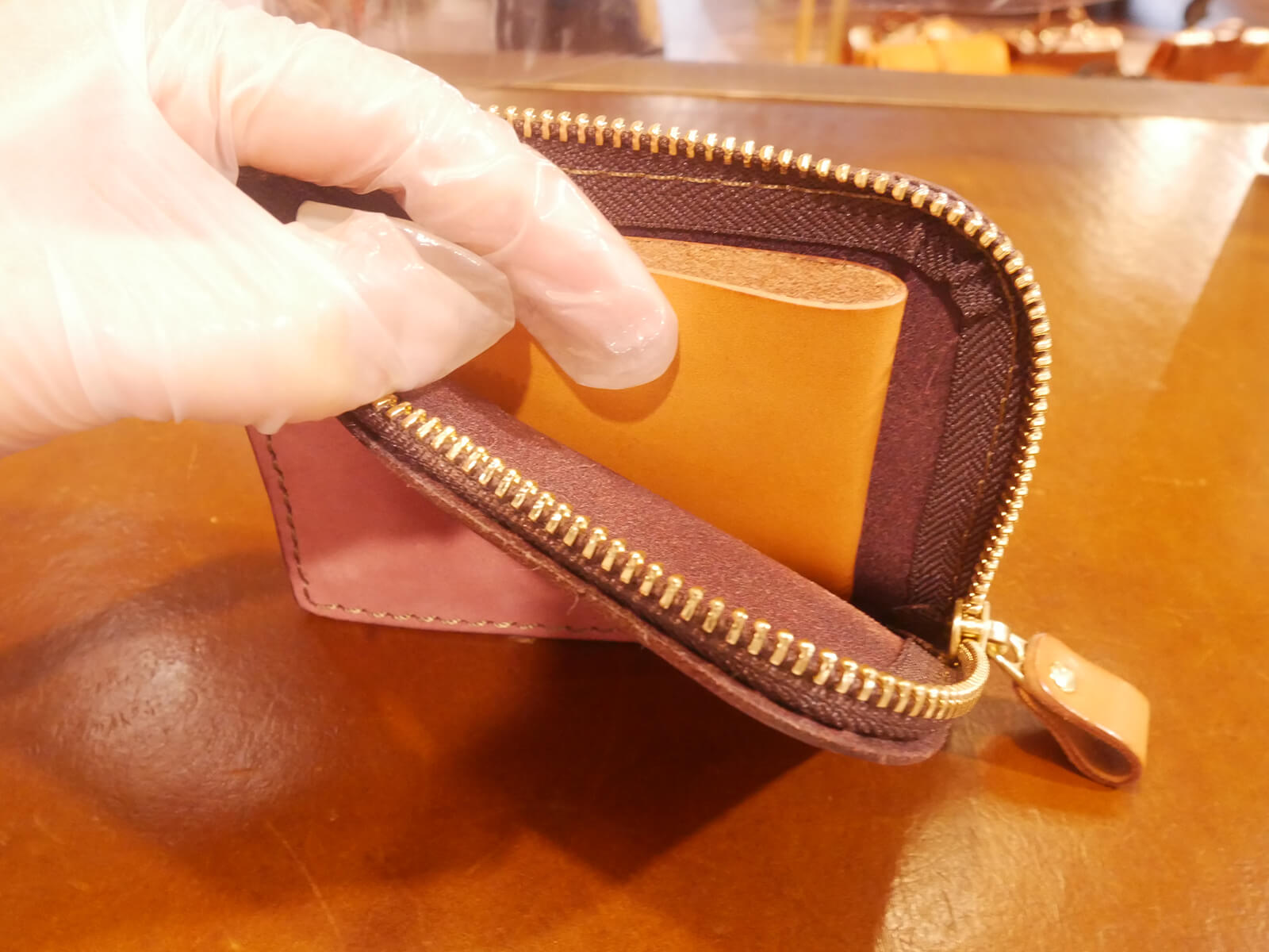 財布などは引手、内側のカラーを変更してお作りしています。お好みの組み合わせをお選びください。