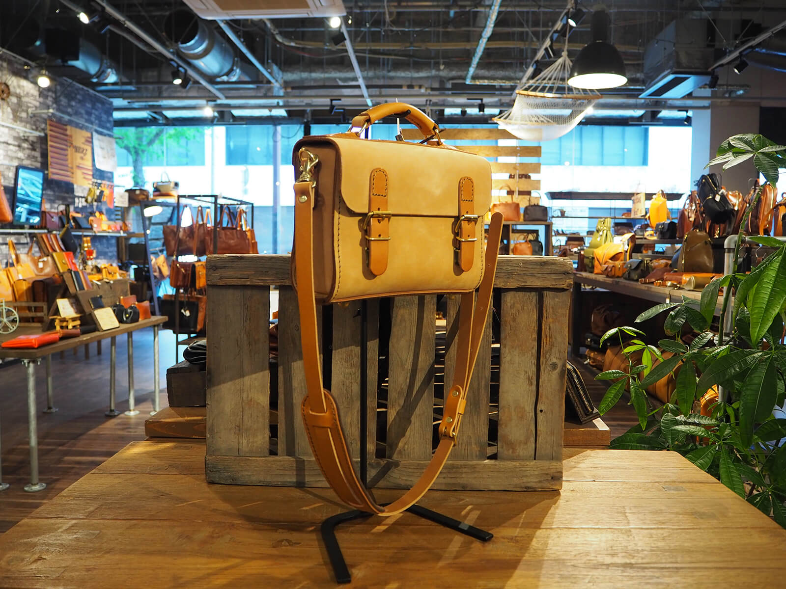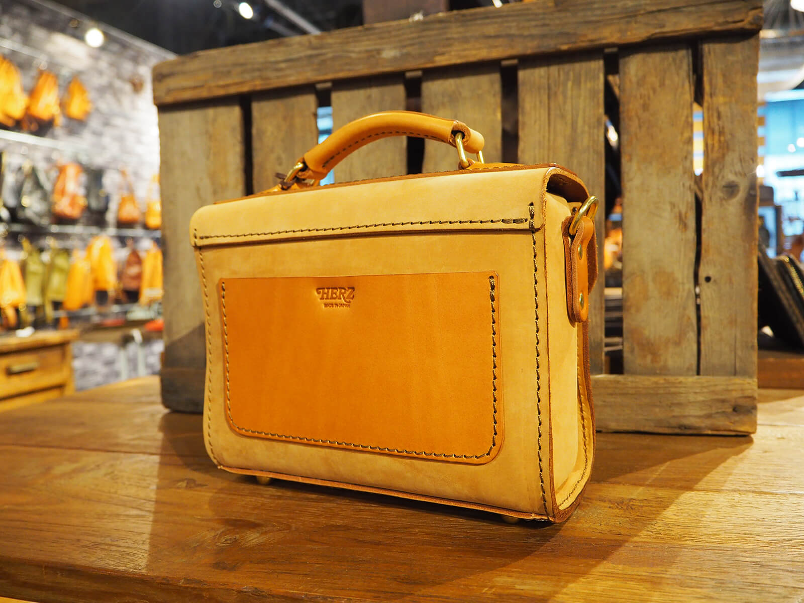 持ち手をカッチリしたタイプへ仕様変更。肩当て付き。