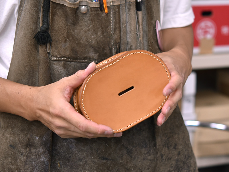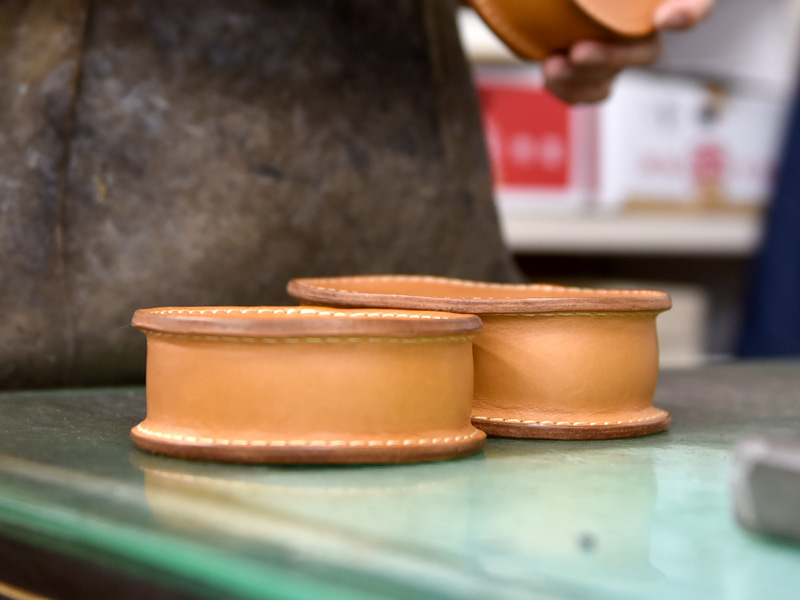 ※一度解いて、空いた穴に沿って革を貼り合わせ、尚且つ縫わねばならないので、一層慎重さを必要とする作業になります