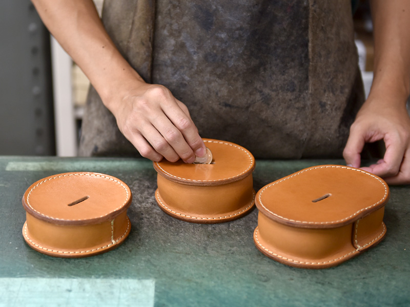 約80人の作り手がそれぞれの思いで自由に作ったサンプル革製品です。