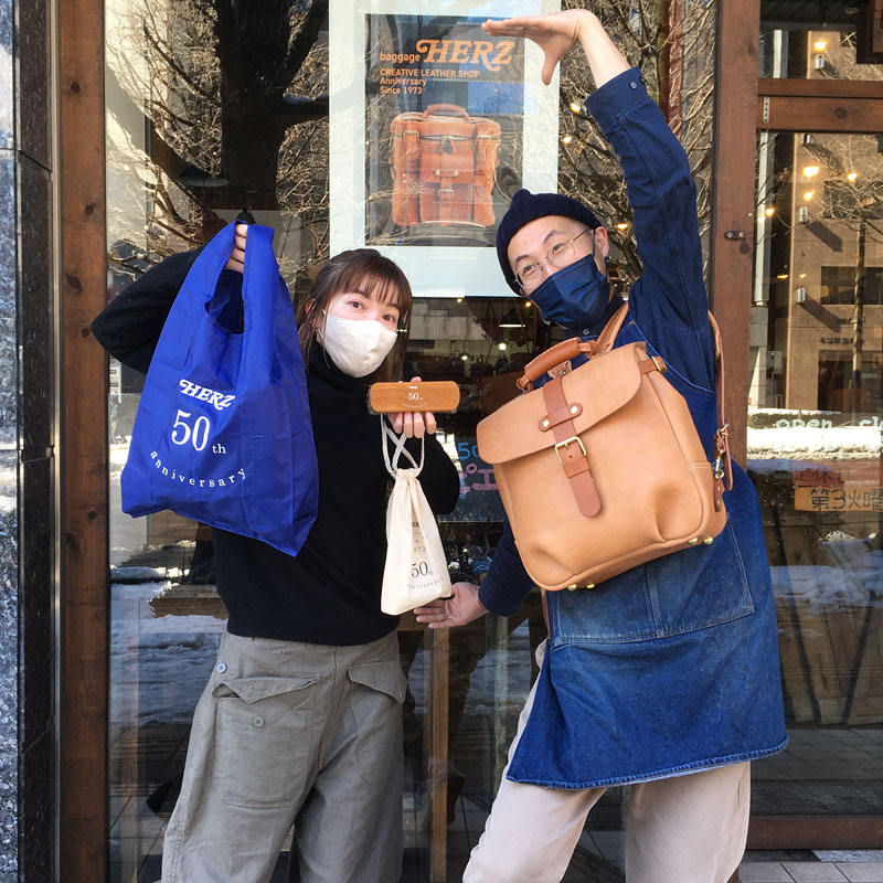 先月より50周年ということで、記念鞄第一弾の販売がスタートしました。