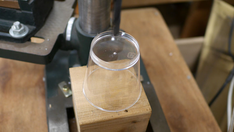 まず、シェードのベースになる容器の底に直径10mmの穴をあけます。