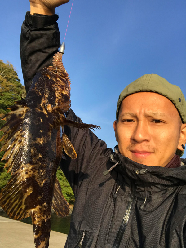 すると釣り場に先行していた小田島が良型のベッコウゾイを上げていました!