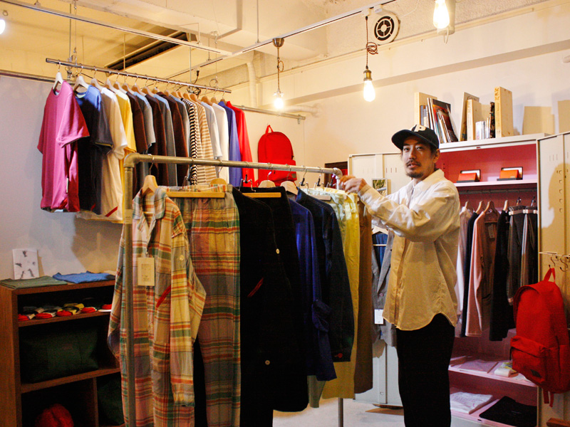 店内入ってすぐのスペースには仙台在住のデザイナーのitamiさんが手掛けるドメスティックブランドeach timeのアイテムがずらりと並んでます。