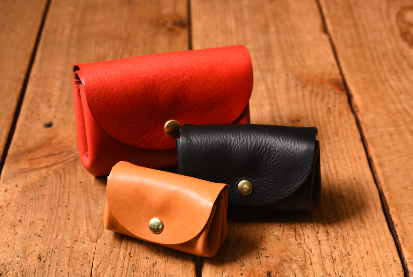 小銭を取り出す動作を考えた作りにしたシンプルなコインケース。お買い物時に小銭を取り出す時も受け側にフラップがついているので、それが受け皿となり、落ちるのを防ぎます。 コインケース(GS-34)商品ページへ